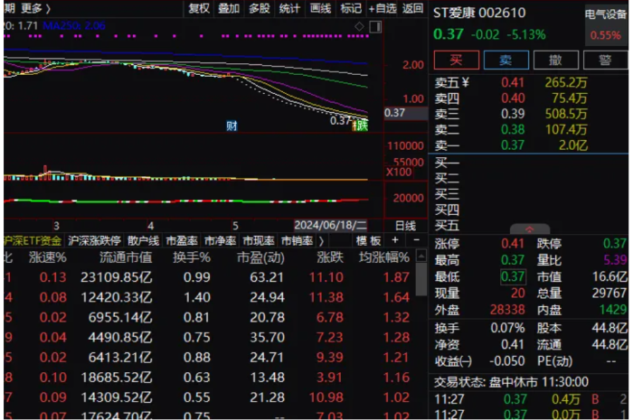 6月18日收盘ST爱康股价暴跌5.13%,报0.37元/股,市值不及17亿元,终结5月20日公司推进户数达28万户。